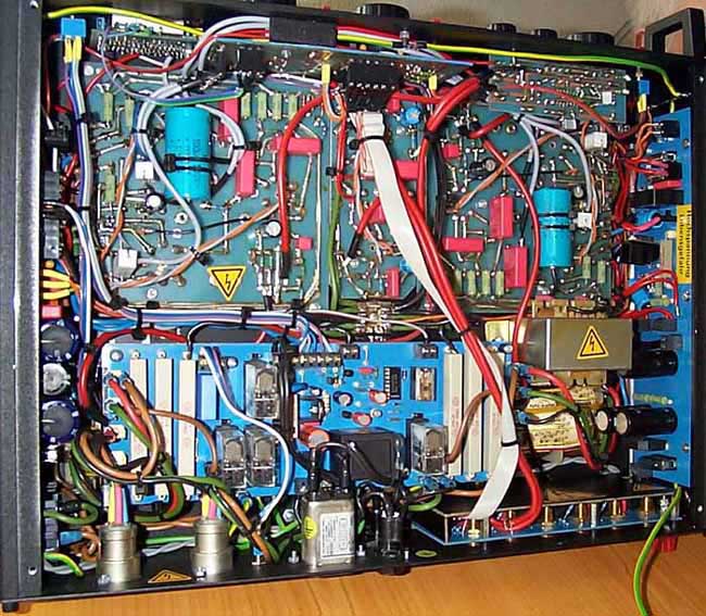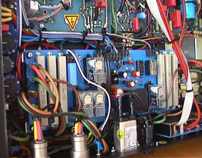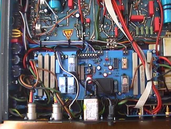 Über der Eingangsplatine erkennt man einen der Ausgangsübertrager.