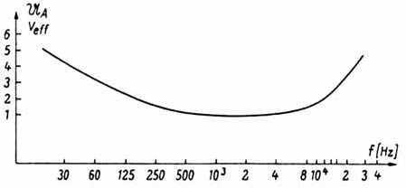 Im nächsten Bild ist der Frequenzgang des gehörrichtig beschalteten Lautstärkeeinstellers P 1 dargestellt.