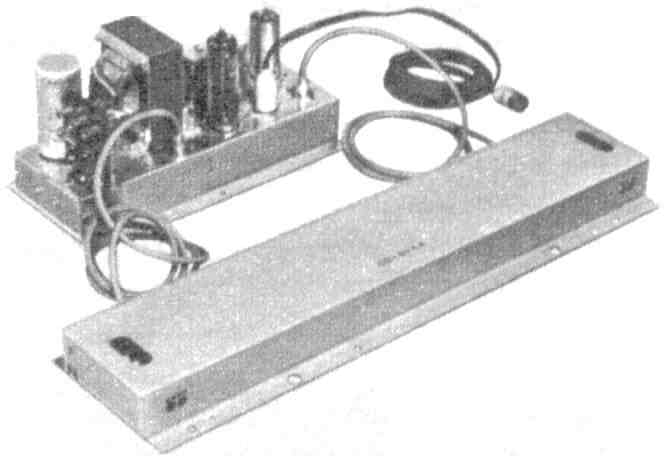 Nachhall-Verstärker mit Netzteil, daran angeschlossen das eigentliche Nachhall-Gerät; es ist im Grunde nur eine