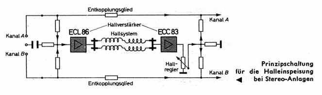 Die grundsätzliche Schaltung für die Anschaltung der Raumhalleinrichtung im Stereo-Verstärker ist im