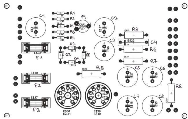 verwendet werden (z.B. 2x EL 84 pro Kanal, also 4 x EL 84) müssen 2 EZ 81 parallel geschaltet werden (Anoden 1 mit