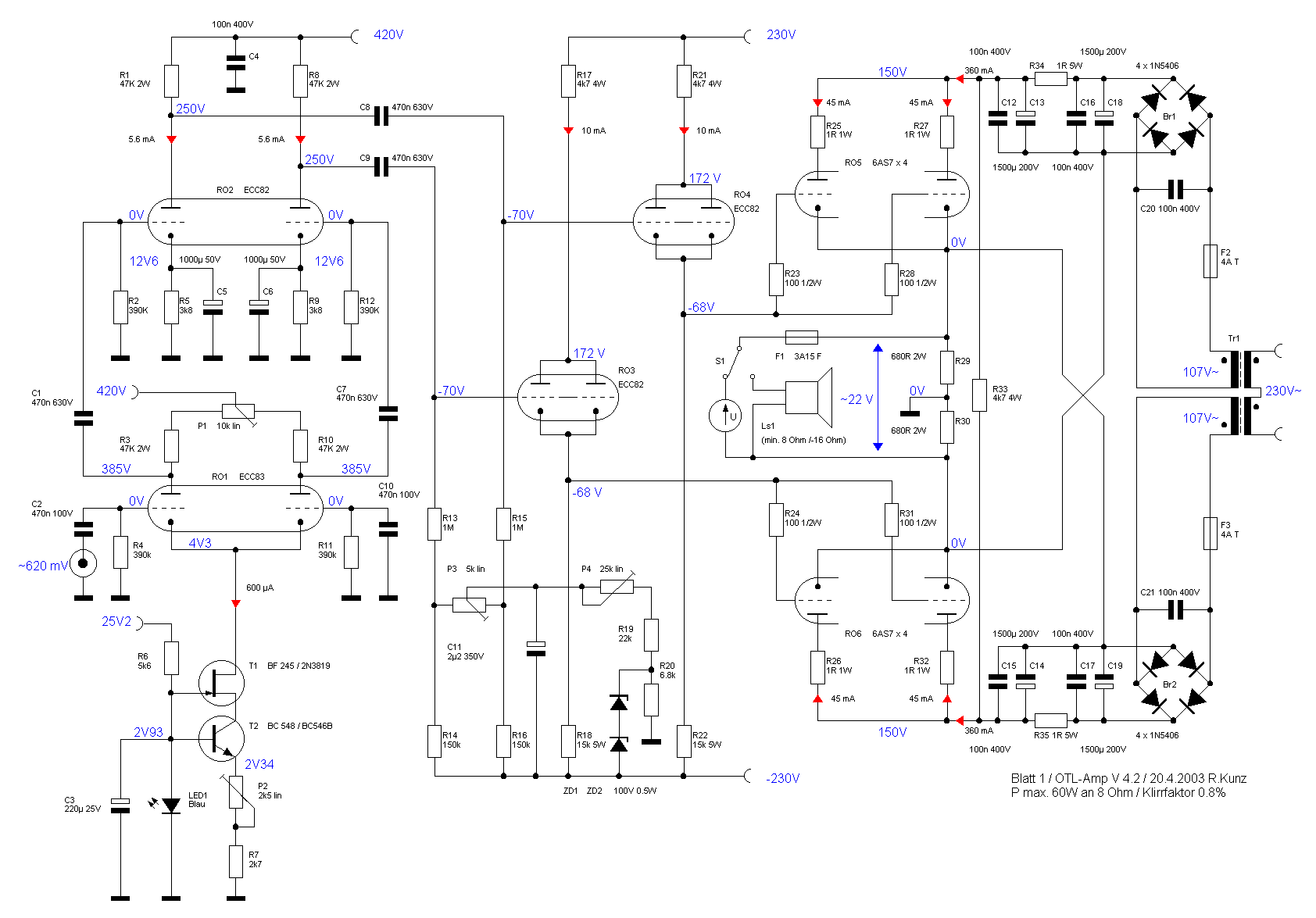 geschaltet, um den Innenwiderstand sehr niedrig zu halten. Mann könnte hier auch beispielsweise eine 12BH7 einsetzen.