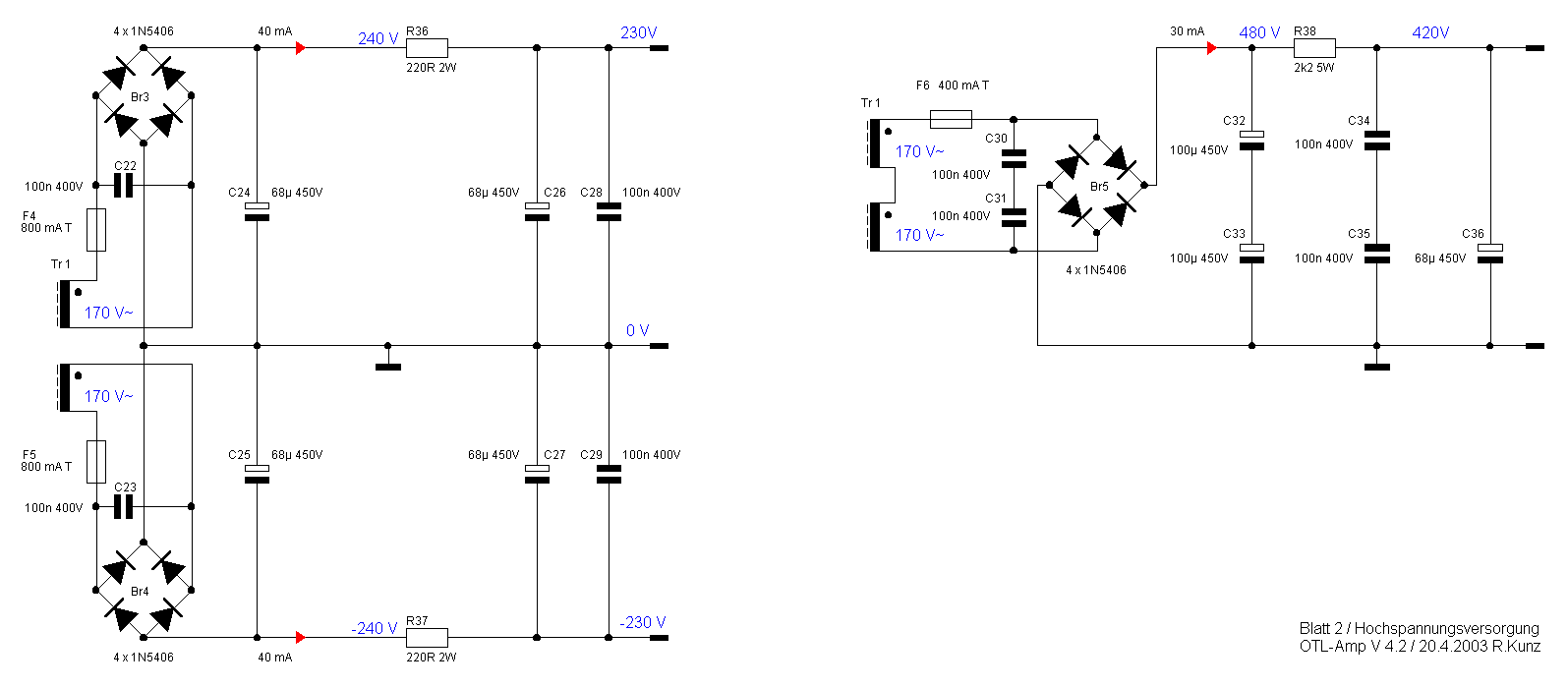 Tr1 = Prim. 2 x 115 V / Sek. 4 x 107 V / 1,5 A 2 x 170 V / 0,15 A