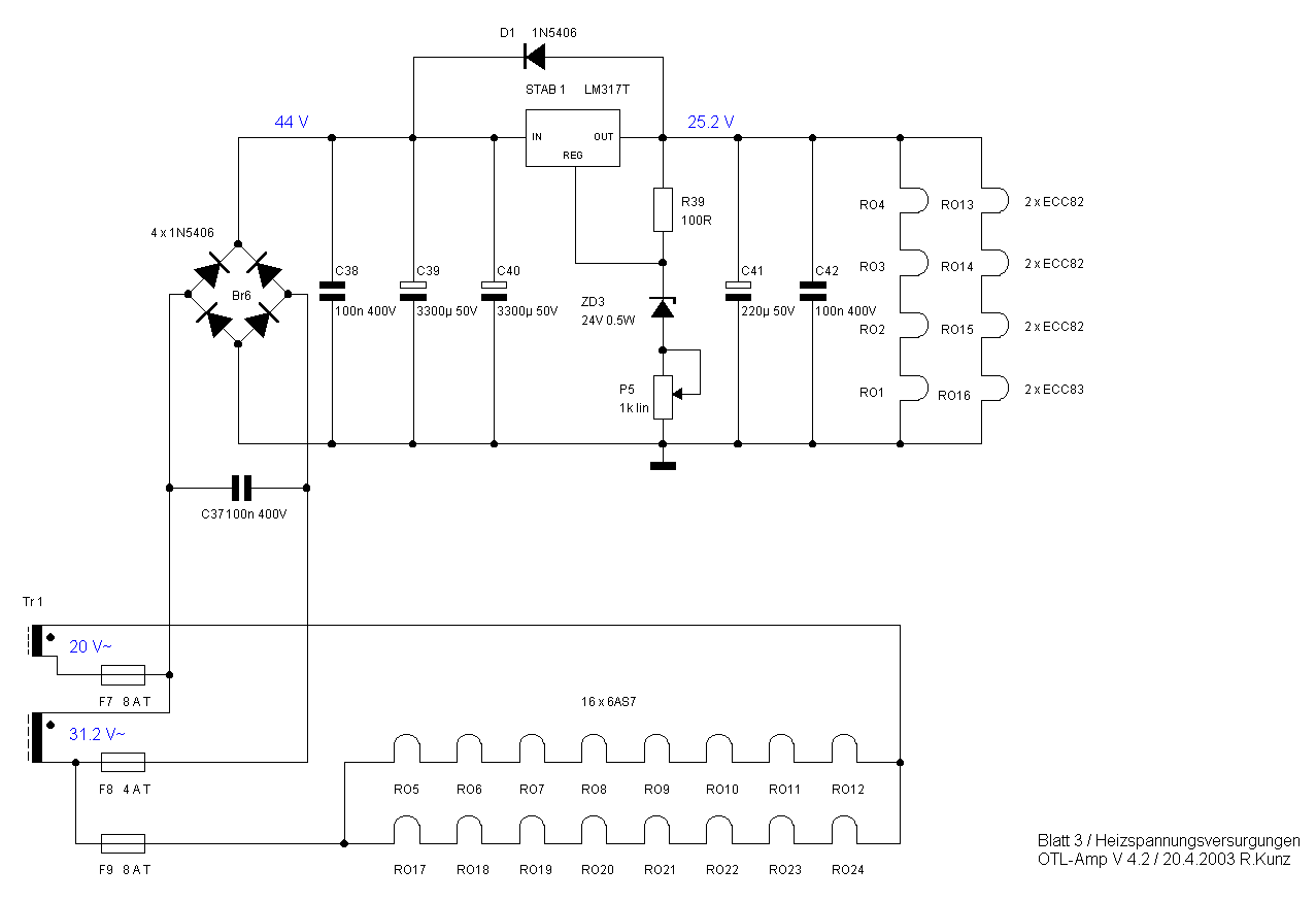 Die Schaltung des Heizungs-Netzteils, mit Gleichstromheizung: