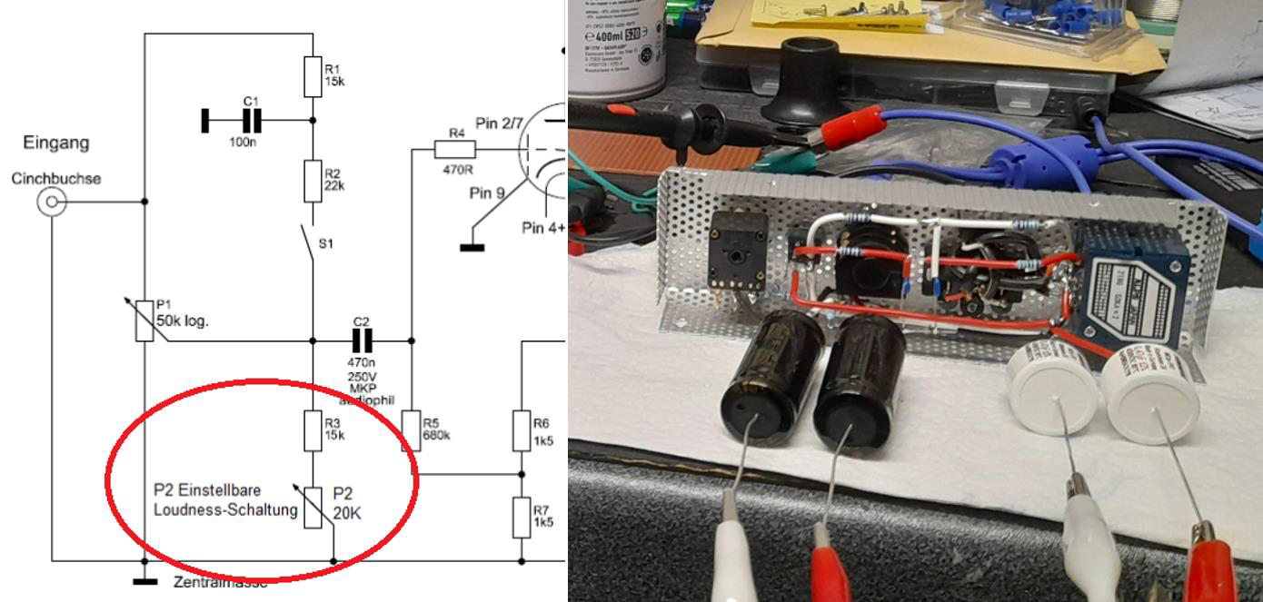 Mit weniger elektrischen Bauteilen in der Verstärker-Schaltung, kann man wohl kaum einen wohlklingenden Röhrenverstärker, mit einstellbarer Loudness, bauen.