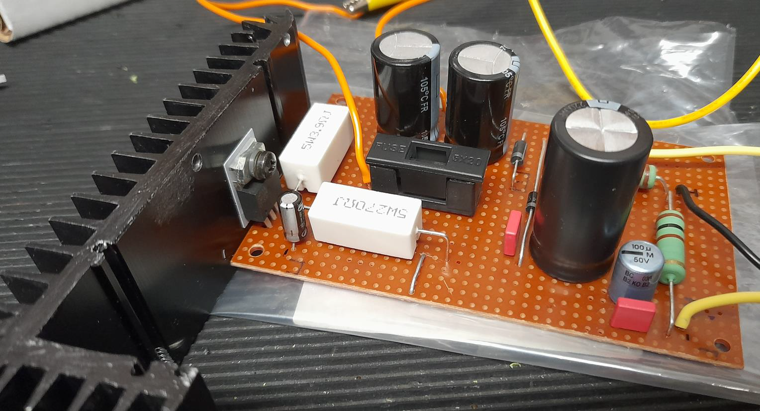 Aufgebaut wurde das DC-Netzteil, wie schon bei Version 1, auf einer Lochraster-Platine, das geht, bei diesen wenigen Bauteilen, recht einfach und schnell.