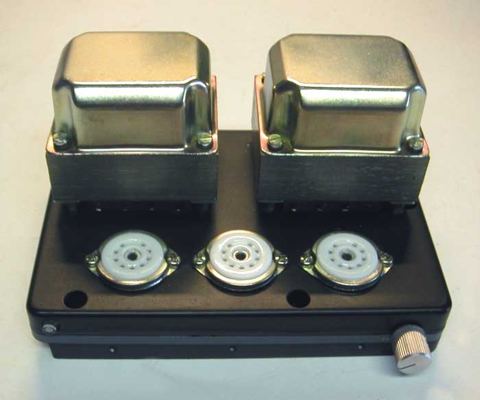 Als Röhren wären die ECL86 ideal gewesen. Nur hatte ich schon einen Verstärker mit diesen Röhren und wollte keinesfalls einen Zweiten damit bauen. Da noch einige PL95 herumlagen stand die Endscheidung für eine Kombination aus PCF802 und PL95 als Gegentakt-Verstärker, mit bis zu 7W Ausgangsleistung, fest. Einige Watt sollten es schon sein und ein PL95-Eintakter wird so ca. 3W erreichen, was mir ehrlich gesagt zu wenig war, ich wollte ja "richtig" Mukke damit höhren. Ich besorgte also passende übertrager mit EL66-Kern, welche auch knapp auf den Plattendeckel passten. |