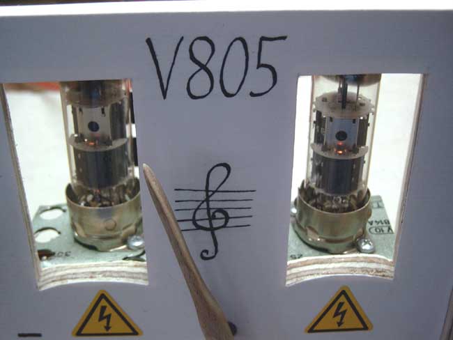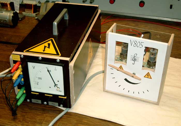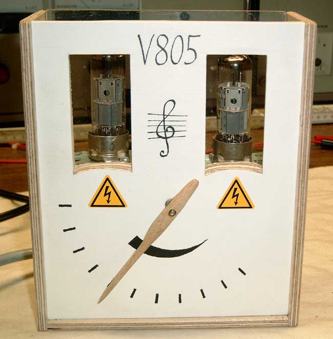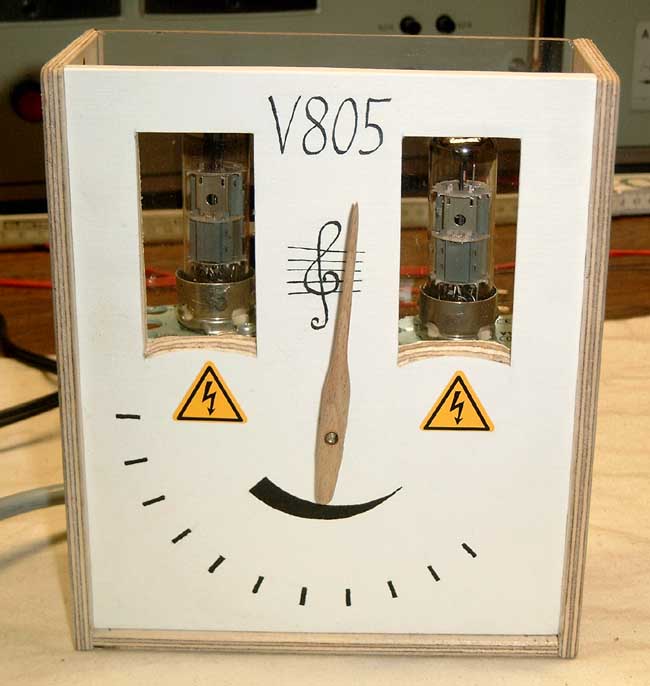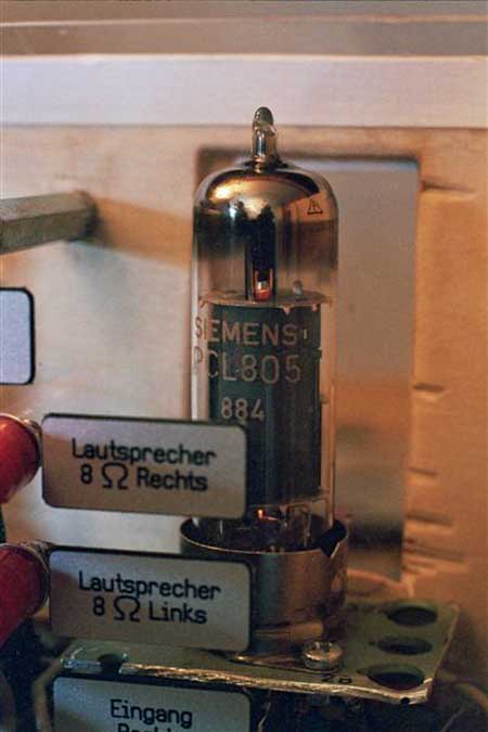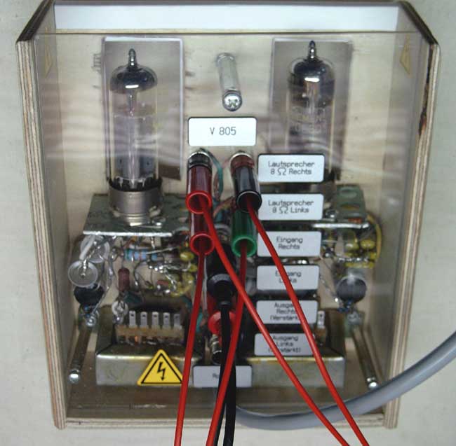 Aufgebaut mit je einer PCL 805 (mit 100-Volt-Ausgangsübertrager) pro Kanal , bringt er gute Pmax= 1,35 W, Pmax